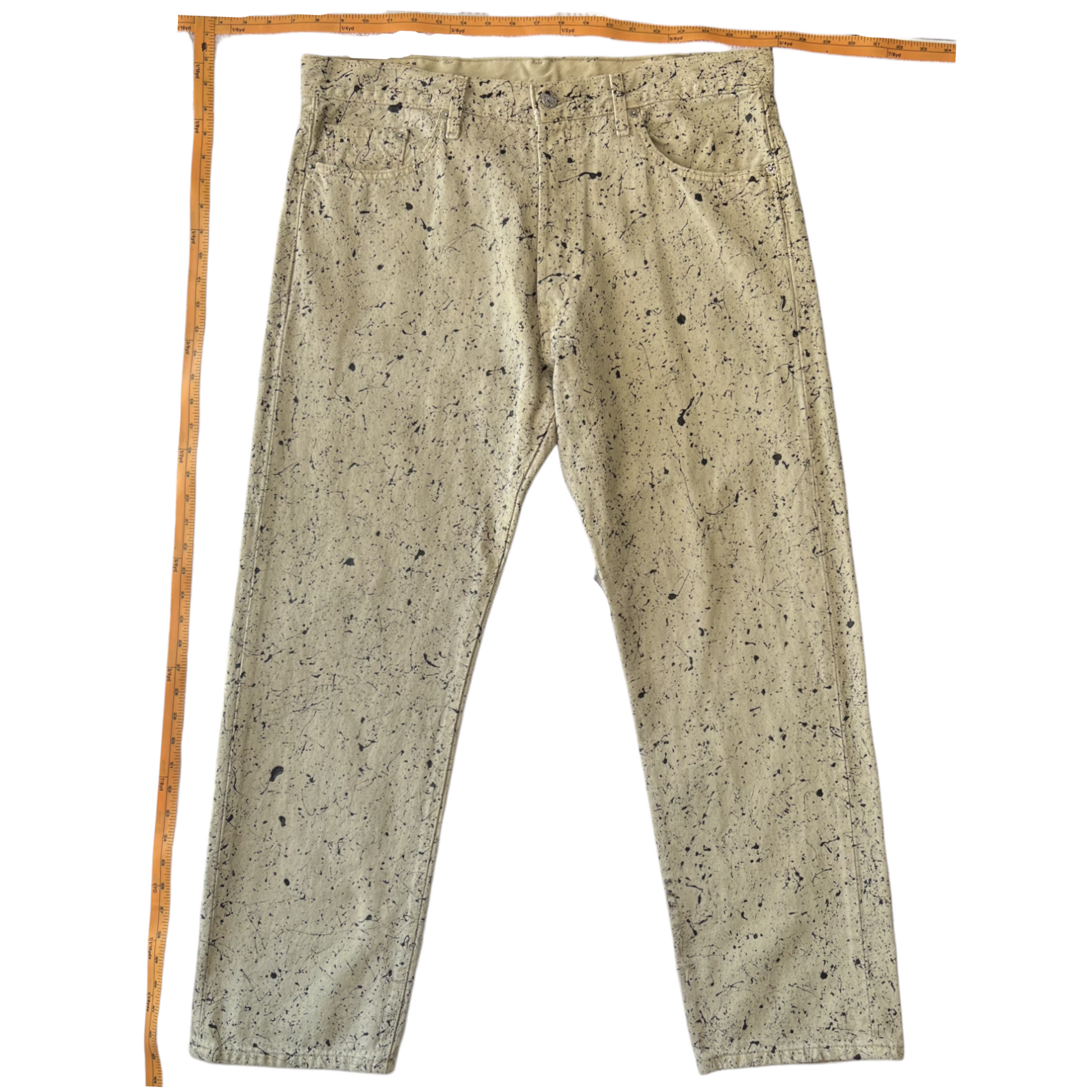 Khaki & Black Splatter Denim Pants - Size 38 x 30